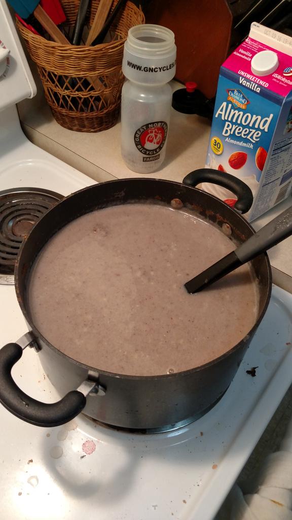 Oatmeal – the greatest food ever invented. If you made plain oatmeal, you would need to cook alot. 1 cup = 300 calories. So 10,000 is going to be 33 cups. Just to put that in perspective…the picture below is 2 cups with a ton of water, cooked nice and thick overnight: