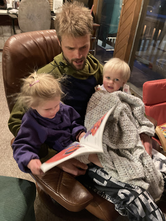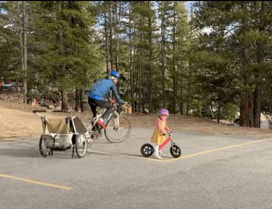I pulled into Leadville around 2:30, bought the afternoon mocha, and read a book for about 20 minutes before Ella woke up and I decided to hang out with her. After a few sips, I bundled her up and loaded her into the bike carrier, then rode around the parking lot with Novi, who was on her strider bike. We raced the ‘loop,’ taking turns shouting, “on your marks, get set, go!” and counting the lined intervals of each 25-meter race.