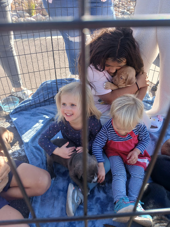 In the afternoon, we walked around the huge Scheels next door, petted some puppies, and eventually, they got into the pool while I did a shakeout run with Ajee on the Sante Fe Trail. Then we all loaded up on delicious mac n cheese and barbecue back at the Drury before bed.