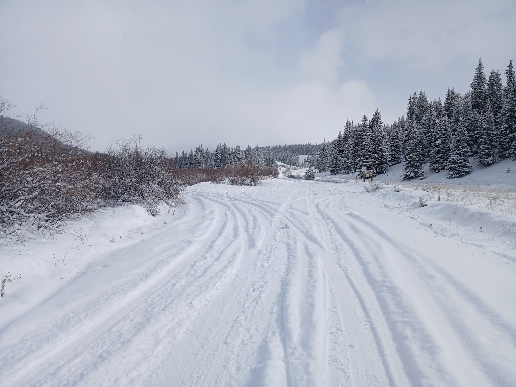 Roads are snow-packed — and haven’t been plowed (at least as of this writing) — all the way up 7th street and into the historic mining districts. Rock skis are still recommended, but the coverage is pretty decent.