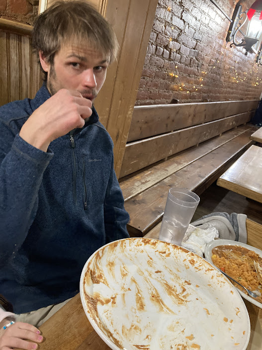 The aforementioned family-hosting obligations pushed those traditions to Jan. 3 this year. That afternoon, I took the goal sheets off the fridge and brought them to City on a Hill for our annual date. My parents offered to watch the kids for the entire afternoon and evening….which basically felt like someone offering to fly us to the moon. … on the one hand, you’re scared of what could happen. At the same time, you feel like you can’t turn down the opportunity, even though logic tells you going to the moon shouldn’t even be possible. (The VAN ALLEN RADIATION BELTS PEOPLE!!!!).